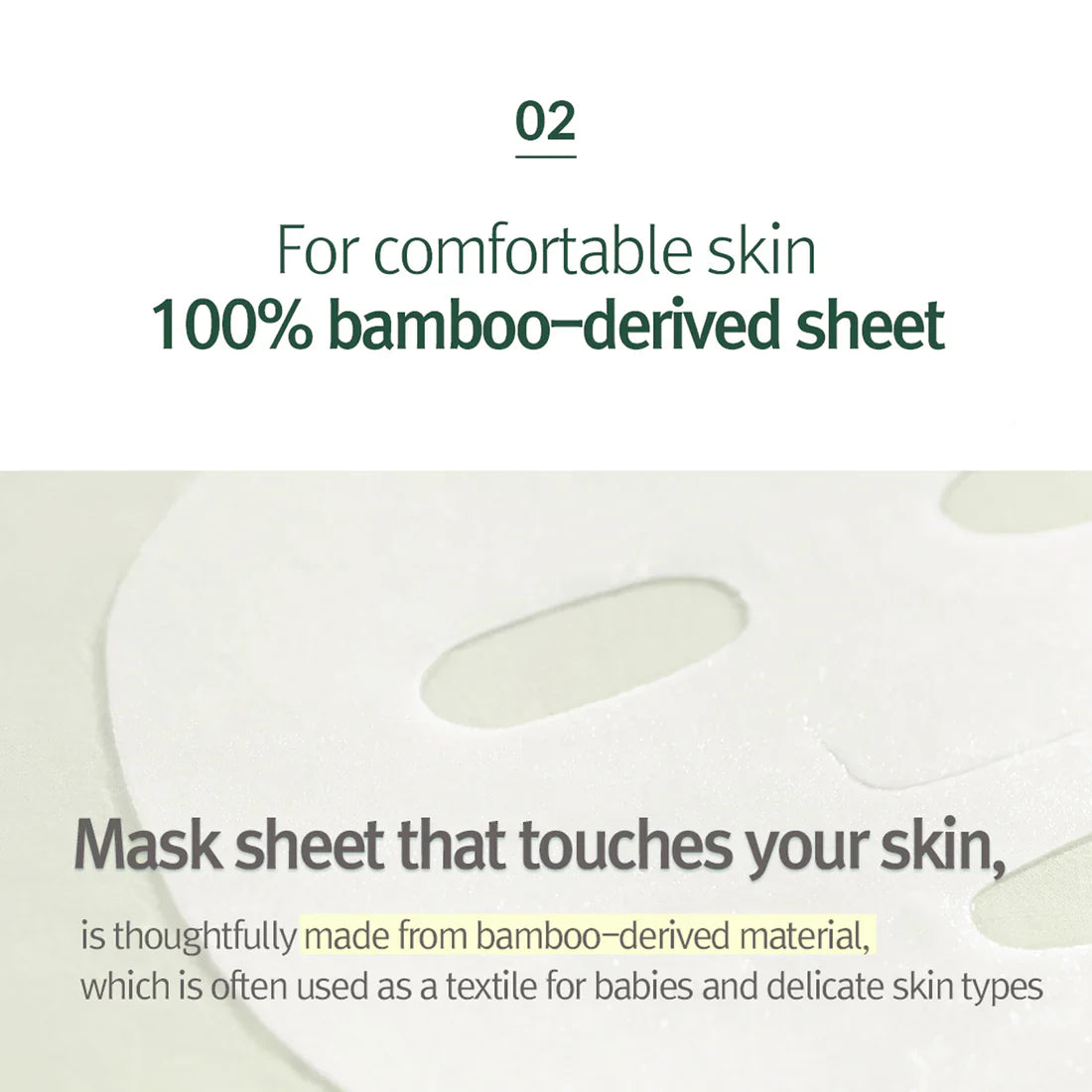 Recommended for sensitive and dry skin. Hydrate and soothe your irritated and fatigue skin with this 100% bamboo sheet mask packed with Centella Asiatica.